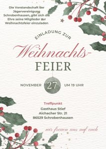Weihnachtsfeier der Jägervereinigung Schrobenhausen und Umgebung e.V.
